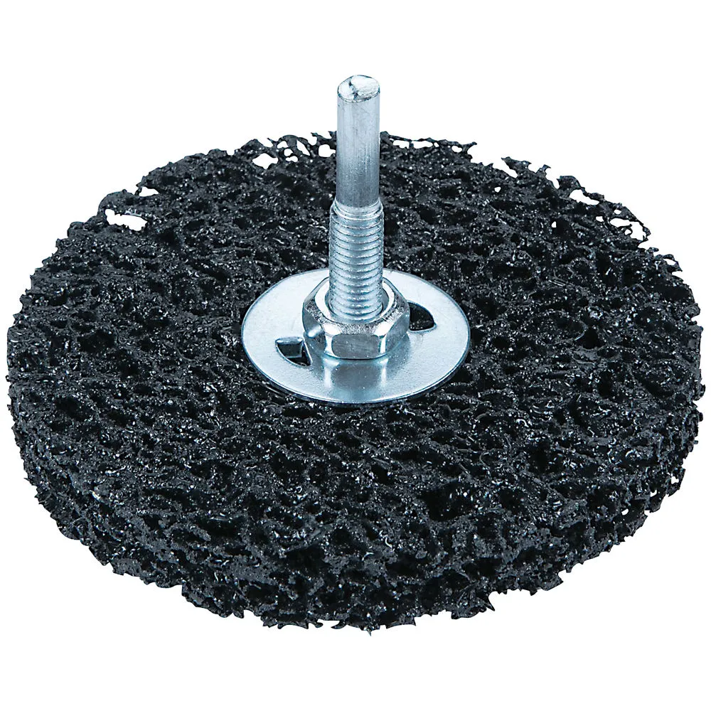 A 100mm abrasive brush coated with aluminium oxide which is ideal for surface preparation, conditioning & finishing. Removing paint, varnish, rust & scale from metal, wood, fibreglass, granite, brick or stone surfaces.