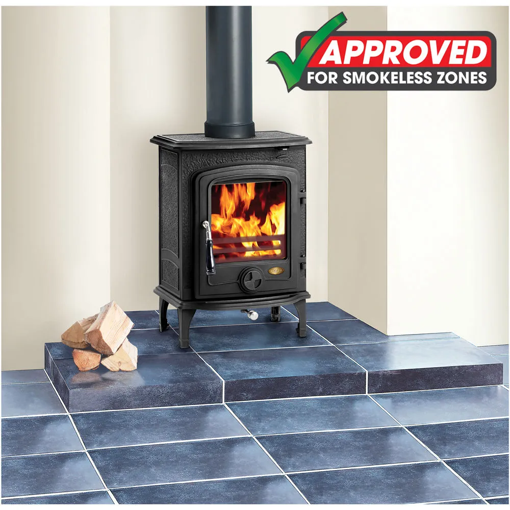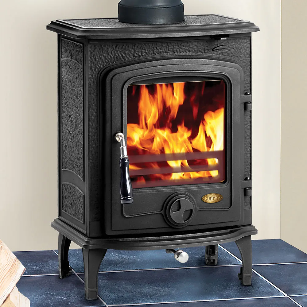 The Chesterford is a durable cast iron stove, finished with a black, heat resistant paint. It has air control for altering the burn rate / heat output. The air wash system helps to keep the inside of the glass clean so you can benefit from the full flame effect.
