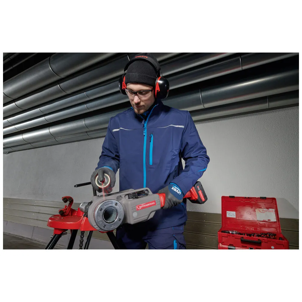 The Supertronic 2000E Pipe Threader is part of the all new Rothenberger 18 Volt range of tools all of which utilise the CAS interchangable battery platform for ease of mobility, flexibility and electrical safety. This allows the full range of tools to be used in any locality, even in the absence of mains power.