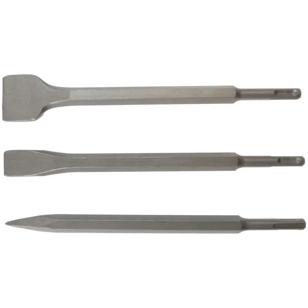 This 3 Piece SDS Plus Chisel Set is specially designed for chipping and chiselling of glazing compounds, mortar, tile and other masonry products. Perfect for all chasing and demolition work in mortar, brick and concrete. Heat treated for increased durability. Suitable for use with SDS plus drills with a roto-stop function.