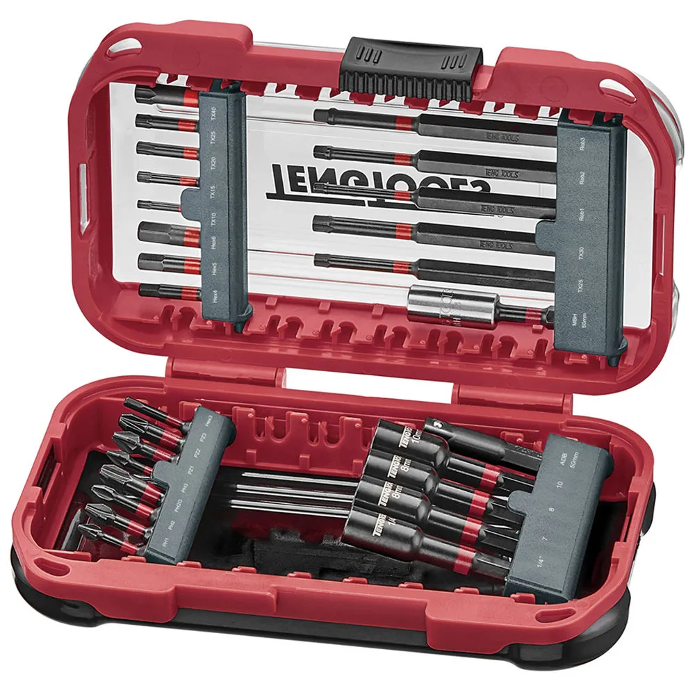 - Supplied in the unique Teng Tools bits box with folding bit holders and a clear lid to easily identify the contents