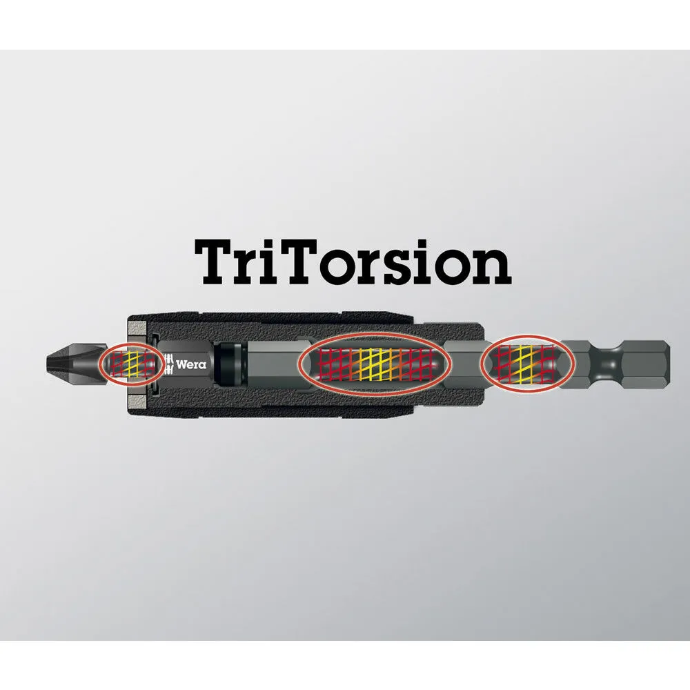 An Impaktor bit set containing the premium TriTorsion system Bit Holder with an optional Ringmagnet to securely hold screws up to 10″. Also a held in the compact case are patented diamond coated, anti cam-out screwdriver bits that are specifically designed for cordless impact drivers and suited to the heaviest duty jobs. The TriTorsion system means the bit and bit holder have been precision hardened to allow the metal to flex in controlled areas and absorb the stresses applied by constant use in heavy duty impact drivers. Due to this hardening process the life of the screwdriver bit is dramatically improved. When used with the Impaktor bit holder the life of the bit can be doubled. The Impaktor system is unrivalled in performance – Extremely hard wearing, premium quality.